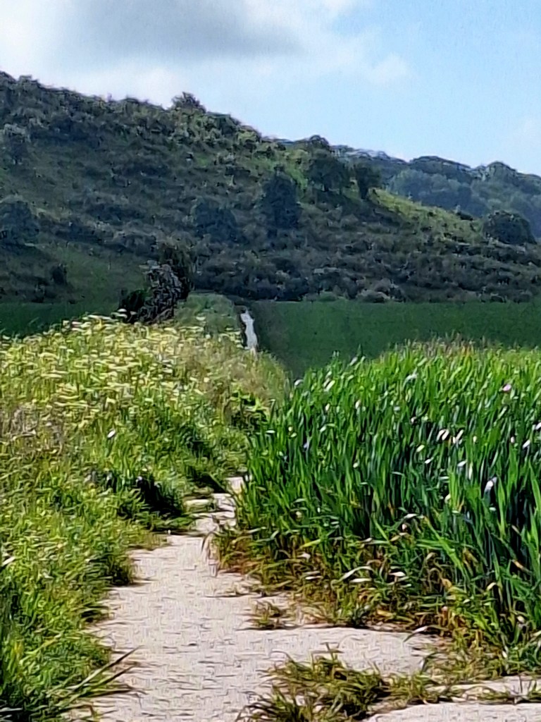 Shortly, the trail entered woodland, filled with birdsong. I paused to try out my new cool,’Merlin’ app. You can identify birds by photo or call