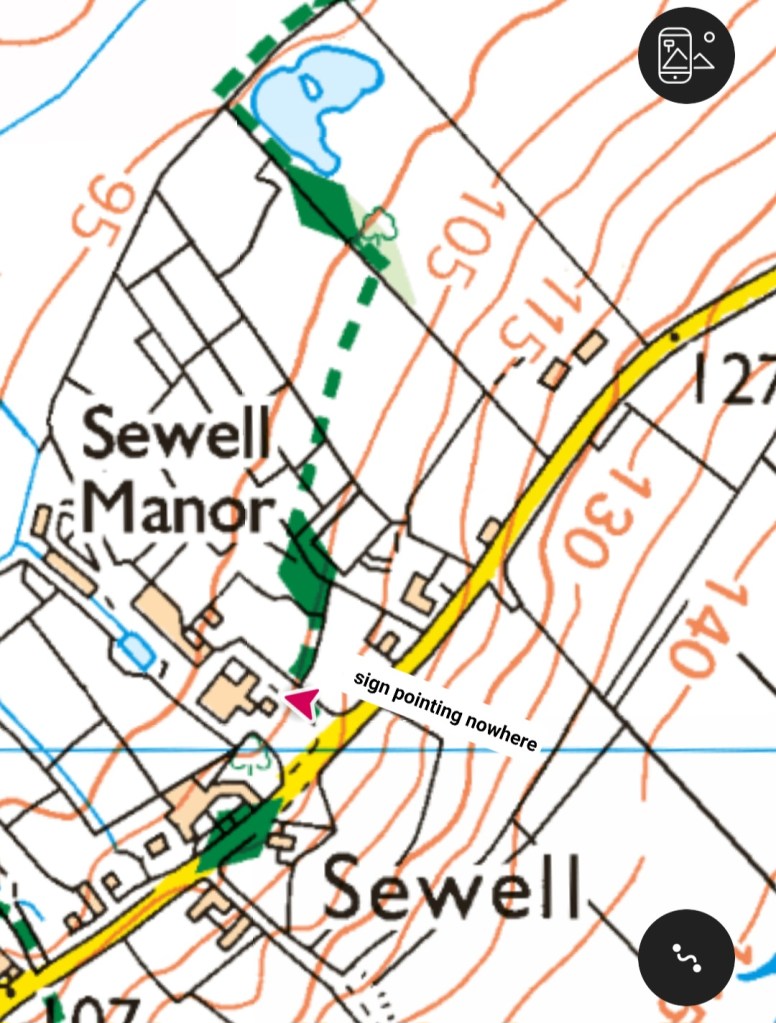 Feeling every kilo of my pack now, I trudged on to Sewell and some very confusing trail markers. Two leading up a bank with no access and one past Sewell Manor, take this one. It leaves the cycle path and onto leafy tracks