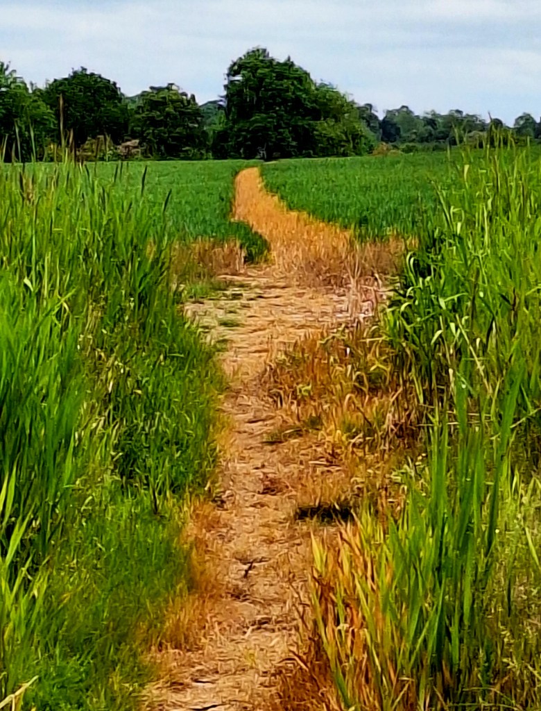 It was easy walking through tall barley and hay fields, miles and miles of long straight fields, over a gentle undulating landscape