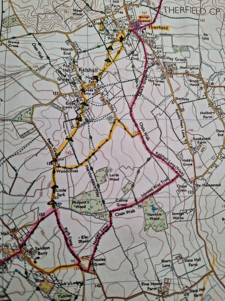 A cheeky short cut, took me to Therfield. A nice little win that saved time and my feet. The Icknield Way Trail, went back on itself and around.