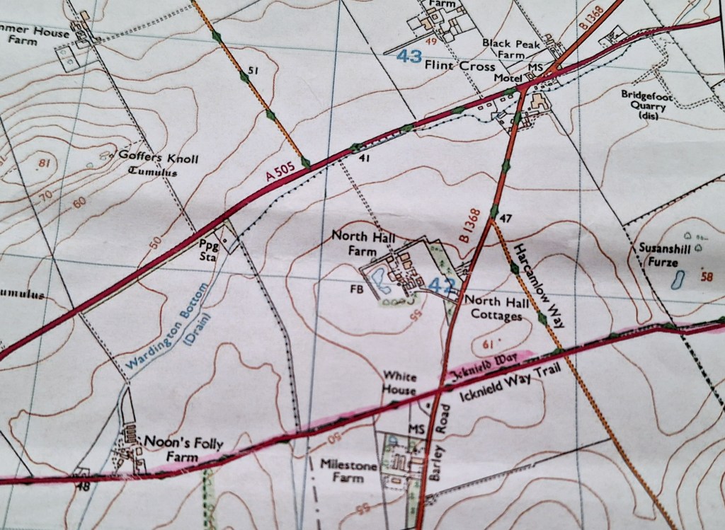 The Icknield Way Trail takes a dog leg away from the A505, then runs parallel to it. Ironically the A505 follows the course of the ancient Icknield Way. I wonder if drivers are aware of the significance of this route.