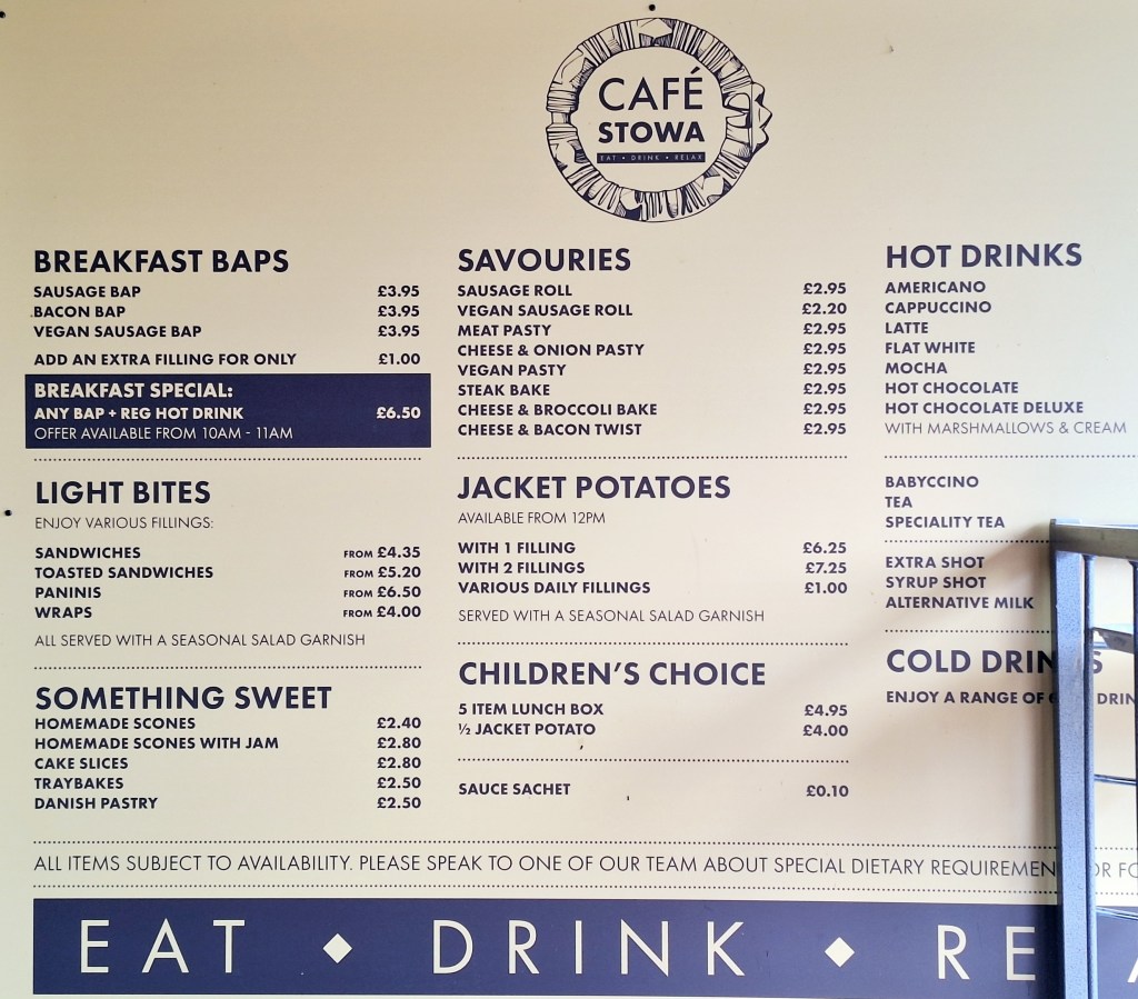 Saved once more, this time by a bacon butty and coffee. They also have sandwiches that I can stock up on to get me through my next stage on the trail