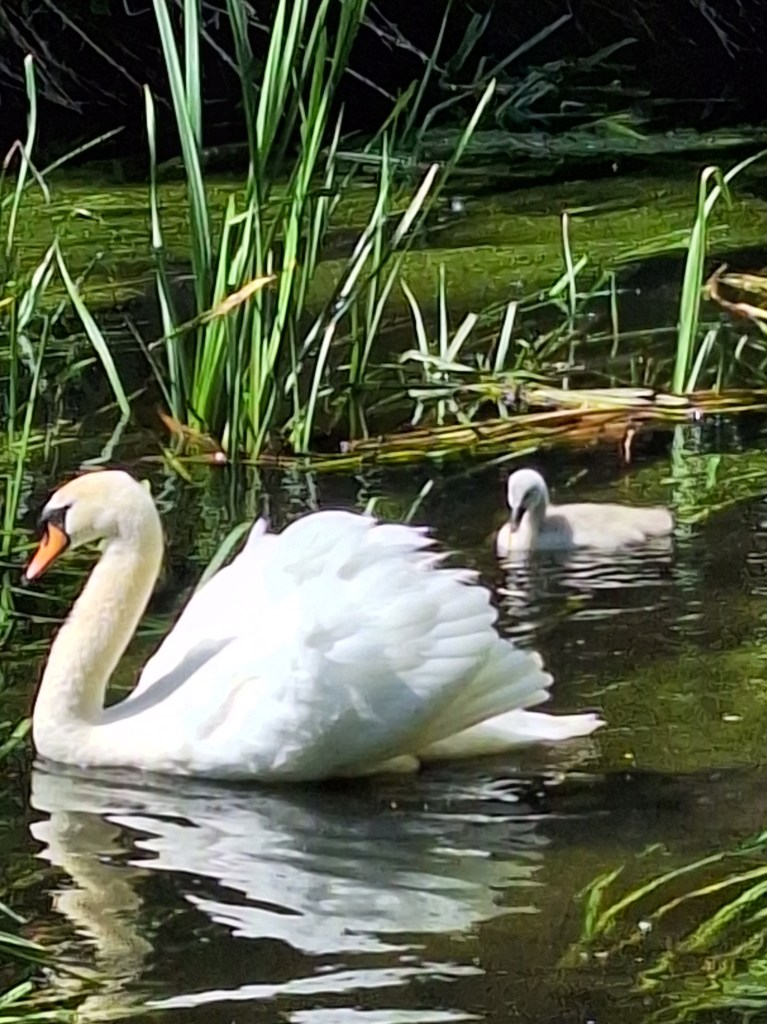 Leaving the centre, the trail meanders alongside the River Lark. There was quite the drama, lots of flapping and honking. The swans and geese were having a dust-up. Both parties were trying to keep the other away from their babies