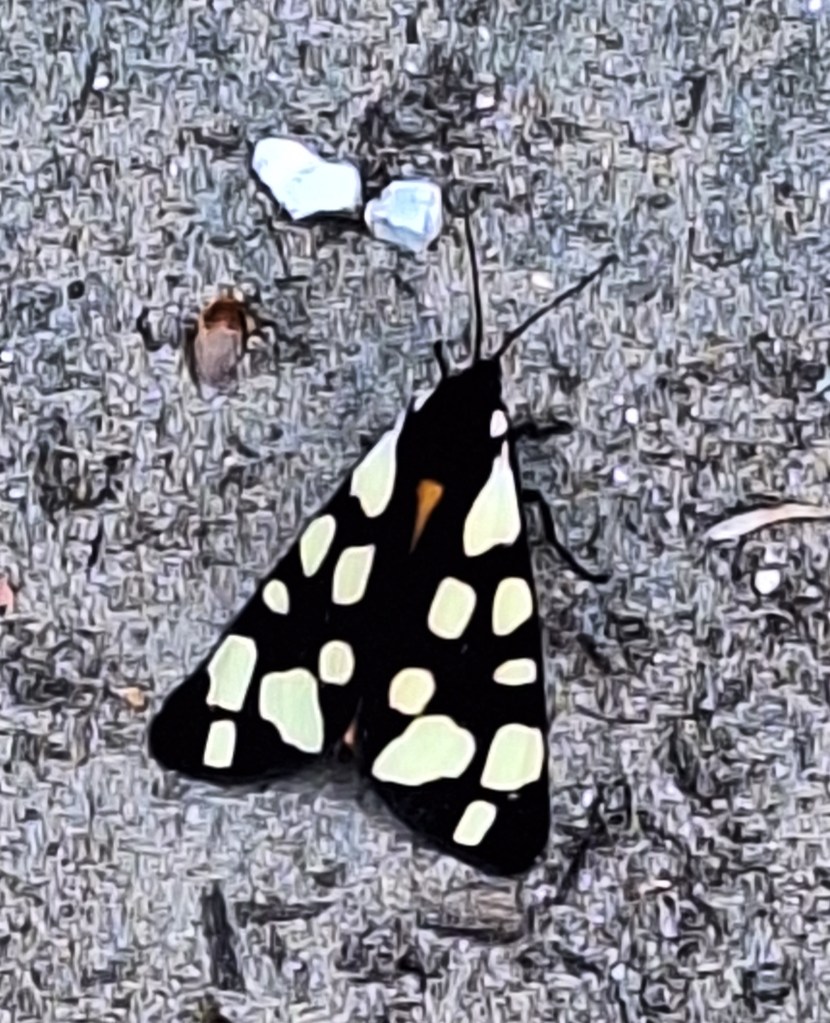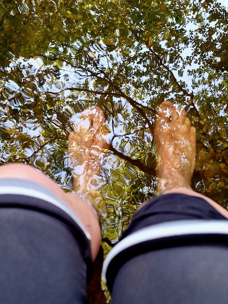 My feet were happy to have a cooling dip, whilst I ate some supper. The paths narrowed and went through tunnels of Ermine Moth silk. Strange and enchanting, hanging from their long silks