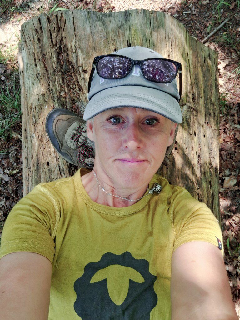 Had a siesta 1pm on a handy log, listened to the birds, and the wind in the creeking trees. It reminded me of when I was a child, I would take myself off to wild places, sit up a tree, and just be