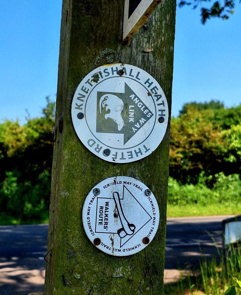 Not far then to Knettishal Heath. The sun was going down, and it was a relief to be out of the heat. I reached the end of the Icknield Way Trail about 7.30 pm and continued along the Peddars Way until the Little Ouse