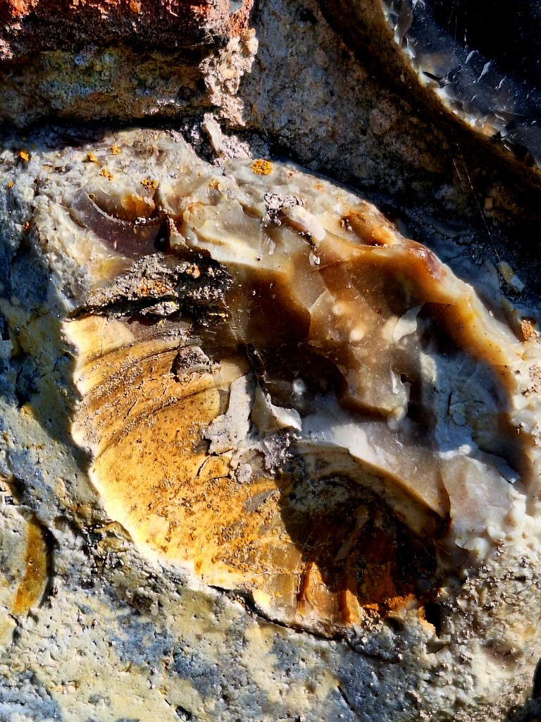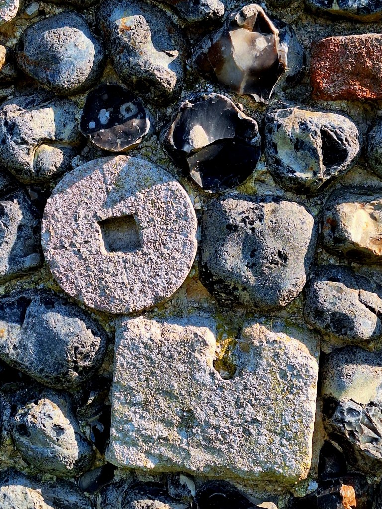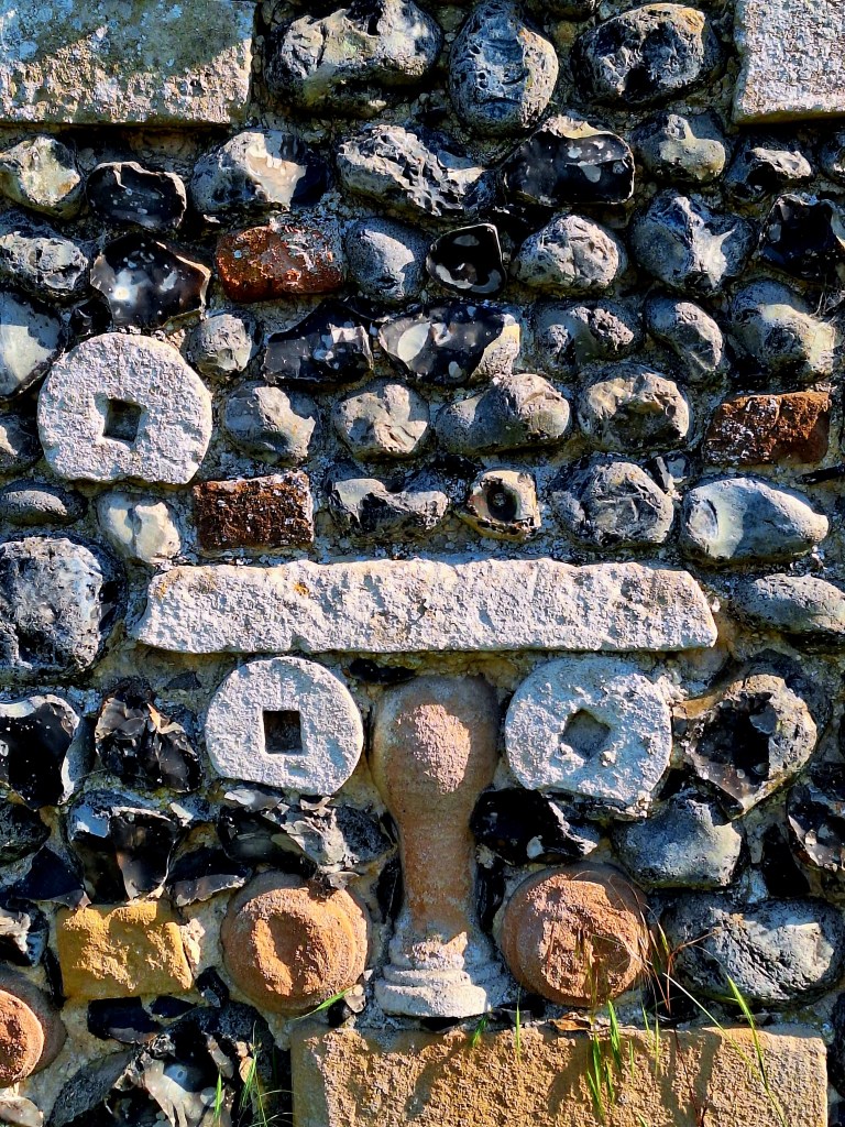 Later afternoon I walked through Euston. There are no facilities, but there was a very interesting wall on the main road. Made of all sorts of building materials and flint