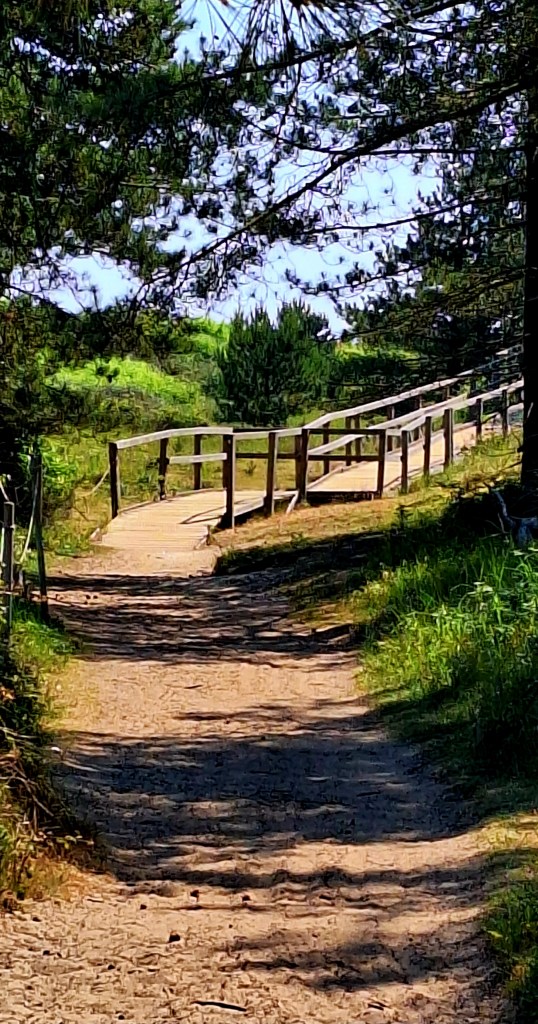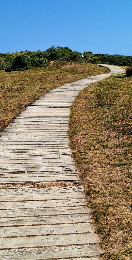 The Coast Path starts on the beach after walking through a section of a golf course. Onto boardwalks and dunes, past salt marshes, and tidal creeks.