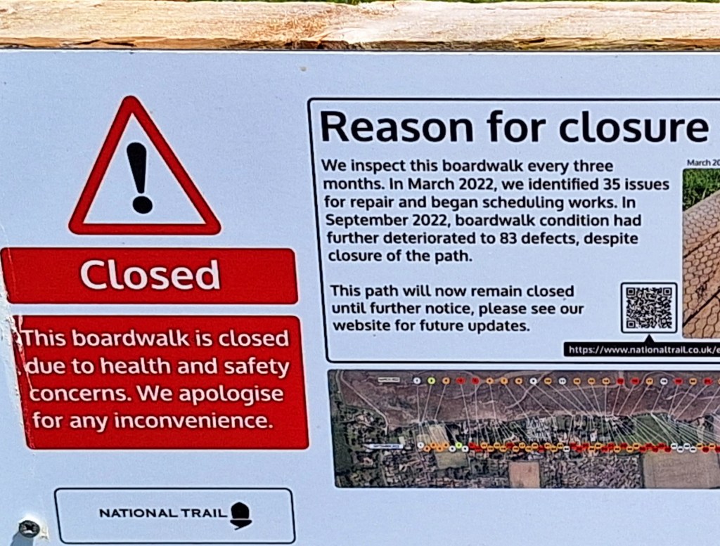 At Brancaster, the coast path continues through the marshes and creeks. However, the boardwalk and path were ‘permanently closed’. The locals, however, had other ideas