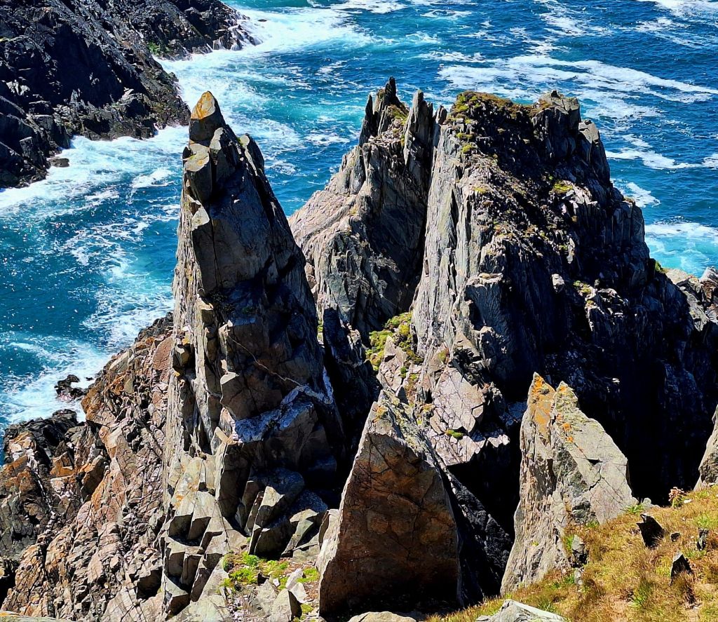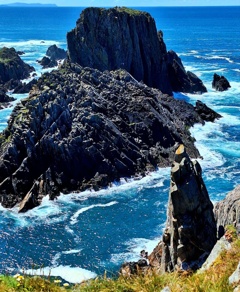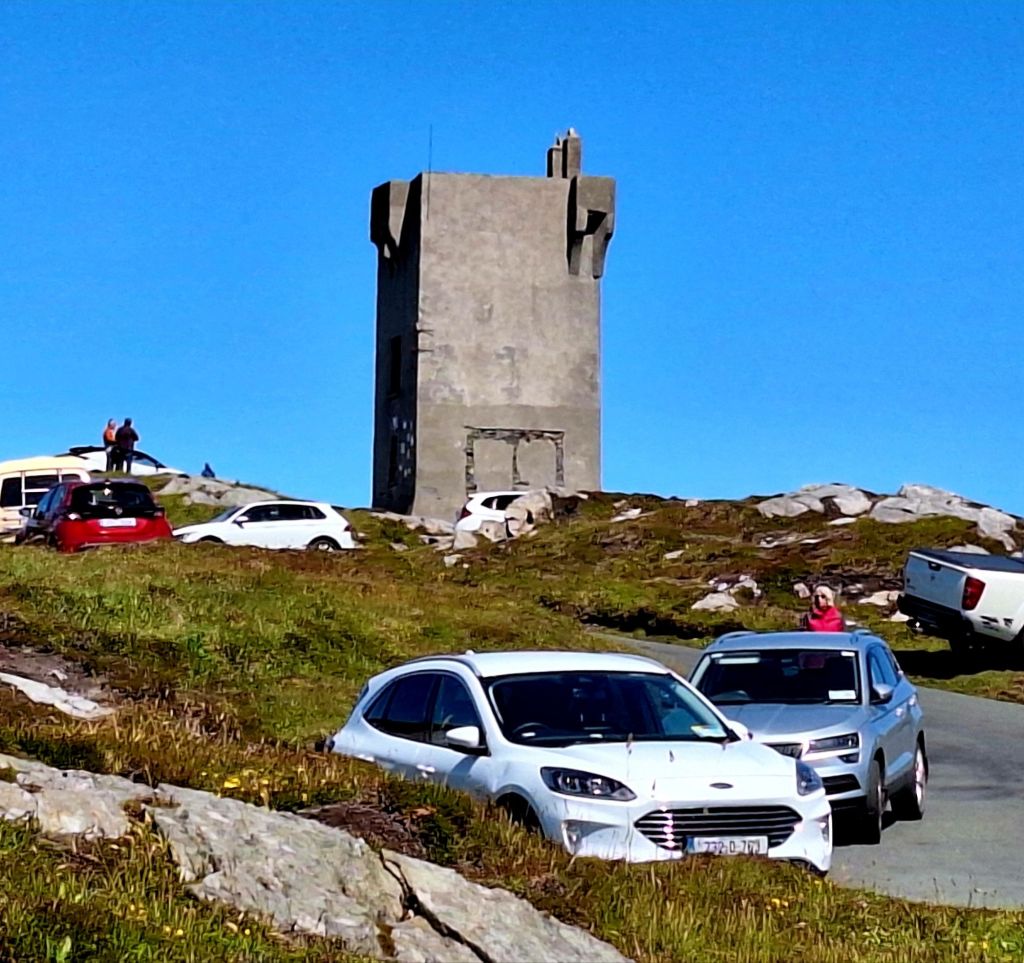 It’s Ireland’s most northerly point, home to a signal tower once used by Lloyd’s insurance company (though not as impressive as ours on the Lizard). This tower sits atop the rocky formation known as Bamba’s Crown, and everyone, of course, wants to stand on it.