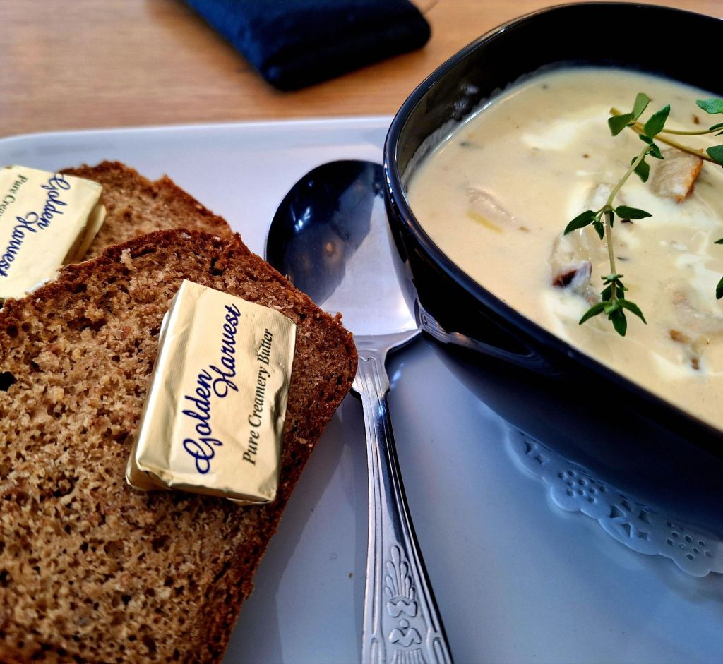 On the other side of the pass, I found a nice cafe, O’Deas Galley. And finally had some decent food: seafood chowder and Guinness bread. Delicious!