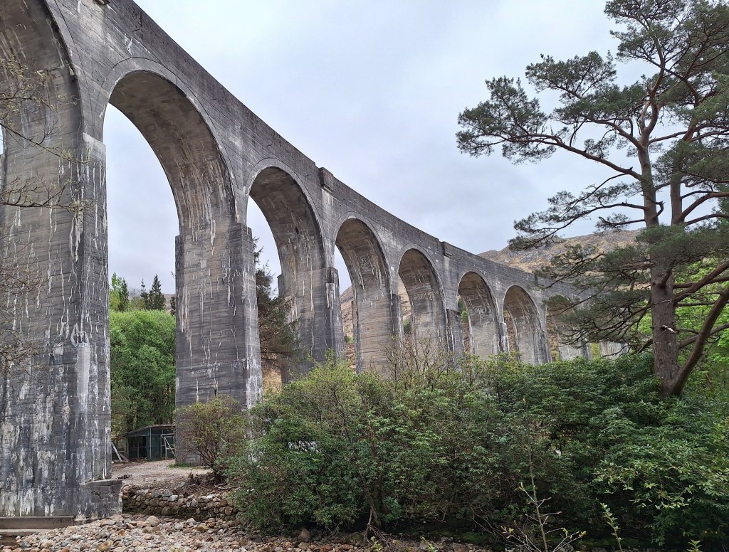 Refreshed and feeling human again, we timed our departure perfectly to catch the steam train puffing its way across the iconic Glenfinnan Viaduct. Built 1897-1901 by Sir Robert McAlpine, the viaduct is part of the Mallaig extension of the West Highland Line. This connection between Fort William and Mallaig was vital for the local fishing industry and the Highlands economy, and many consider it a very scenic train journey.