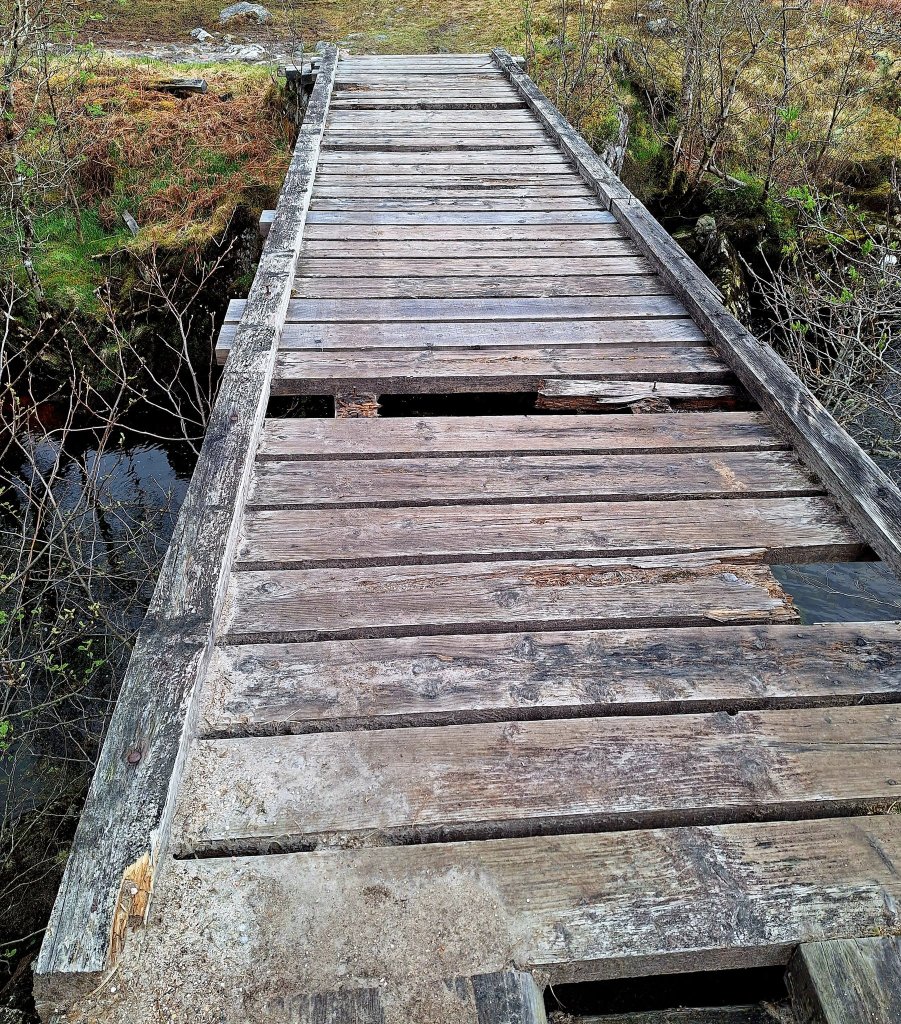 By pure luck, we reached the bridge over the River Pean, somehow completely bypassing the notorious bog. There is apparently a sign warning you away? described as having thigh-deep sections! Pean Bridge, is a literal death trap. We crossed without plunging to our watery graves and headed into the woods for the final stretch.