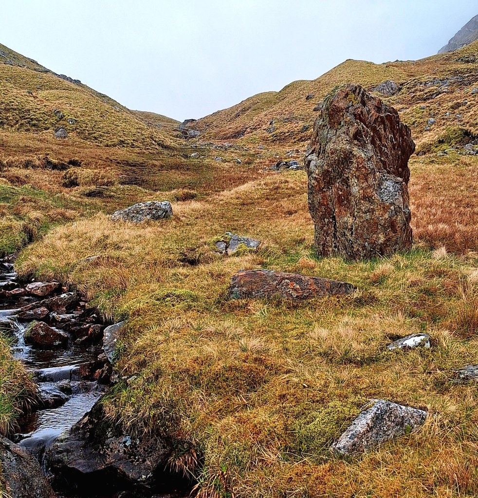 A much more leisurely pace today, with dramatic Highland views, and obvious tracks. Mostly overcast, it was perfect weather for hiking. It’s very dry on the trail at the moment, and a good time to walk it.