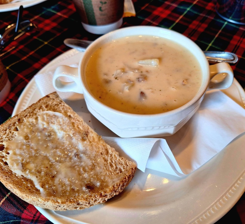 A much needed lunch in the bar, Cullen Skink, a thick Scottish soup made of smoked haddock, potatoes, and onions. Plus a cheeky ‘Black Cow’.